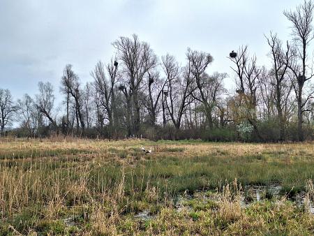 Die Wanderer wurden von einer überraschend großen Anzahl Störchen begrüßt. Majestätisch schwebten die großen Vögel mit einer Flügelspannweite von bis zu 200 cm über die Wiesen zu ihren Brutstätten in den Baumkronen. Mit lautem Klappern ihrer Schnäbel machten sie unverwechselbar auf sich aufmerksam. Nach ein wenig Niederschlag in der ersten Stunde der Wanderung entwickelte sich die Witterung zu idealem Wanderwetter bei frühlingshaften Temperaturen. Der Weg durch das vom Naturschutzbund (Nabu) betreuten Naturschutzgebiet ergab immer wieder interessante Einblicke in die Natur zwischen Äckern, Wald und Wiesen.