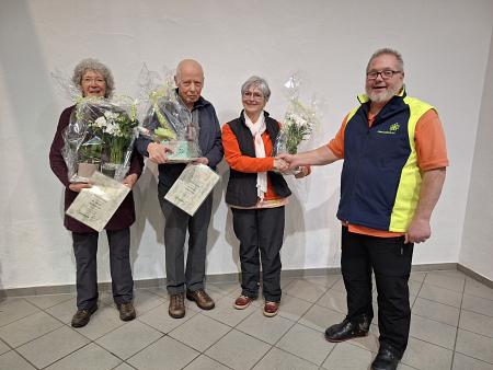 Für 25 Jahre Mitgliedschaft im OWK Ober-Ramstadt galt es Rita Braun, für 40 Jahre Mitgliedschaft Maria Nicolay sowie Ernst Nicolay zu danken. Vor 70 Jahren hat sich unsere Wanderfreundin Elfriede Breitwieser und vor 75 Jahren Erna Bonin entschlossen Mitglied im Odenwaldklub Ober-Ramstadt zu werden. Die Ehrungen wurden mit der Übergabe einer Urkunde mit Abzeichen sowie einem Präsent der Ortsgruppe durch den 1. Vorsitzenden der Ortsgruppe Hans-Jürgen Becker ausgesprochen. Da Elfriede Breitwieser und Erna Bonin verhindert waren wird die Ehrung zunächst auf das Wanderehrungsfest am Samstag, den 28.02.2026 an gleicher Stelle vertagt. Dank galt auch Hans-Peter Nicolay für seine Arbeit als Wegemarkierer des OWK und Maria Nicolay für die Unterstützung der Pressearbeit. Der Vorstand bedankte sich bei den Anwesenden für die konstruktive Beteiligung an der Jahreshauptversammlung. Die Jahreshauptversammlung wurde um 20.15 Uhr geschlossen.