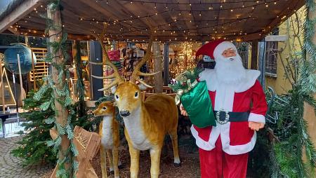 Weihnachtsmann mit seinen Rentieren in Erbach