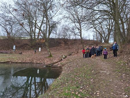 Die Wandergruppe vor den Fischteichen des ASV Modau